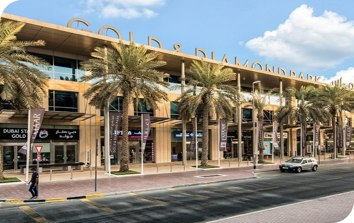 Мы находимся в Парке Золота и Бриллиантов (Gold and Diamond Park) в Дубае.